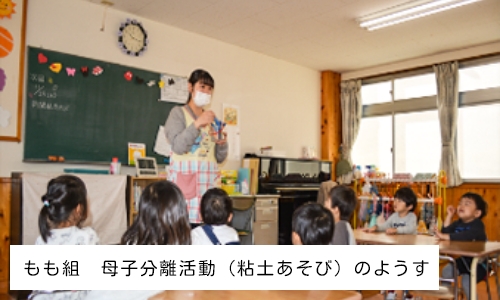 もも組は2歳児の未就園児クラスで週1回保護者の方と一緒に通うクラスです。