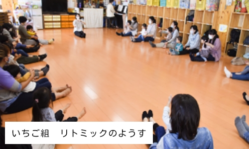 - いちご組は1歳児の未就園児教室で月に2回程度親子でのリトミック活動を行うクラスです。