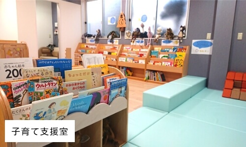 - ➃子育て支援室にて絵本貸出し・室内遊具・おむつ替え台、授乳室利用可能。