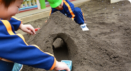 お家の方が迎えに来るまで、年少組から年長組のお友達と一緒に、お昼寝をしたり、おやつを食べたり、外や室内で自由に遊んだりしながら楽しく過ごします。
