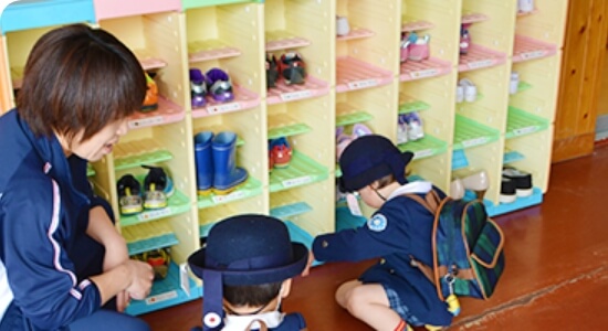 めいっぱい遊んだり、練習などに励んだ後は、片づけをして、帰りの支度を子どもたち自身で頑張ります。